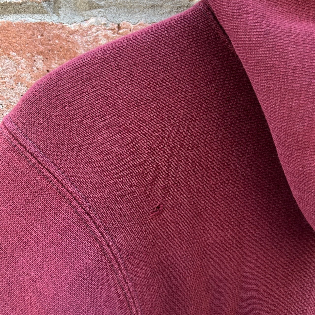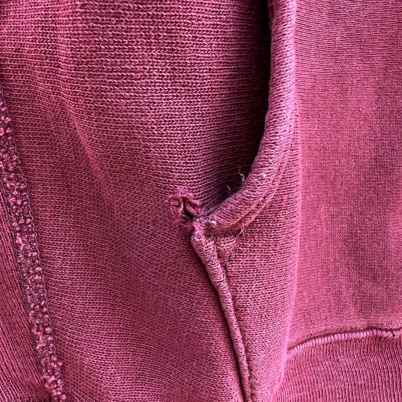見事に褪色したエンジボディの無地、希少なパーカー。