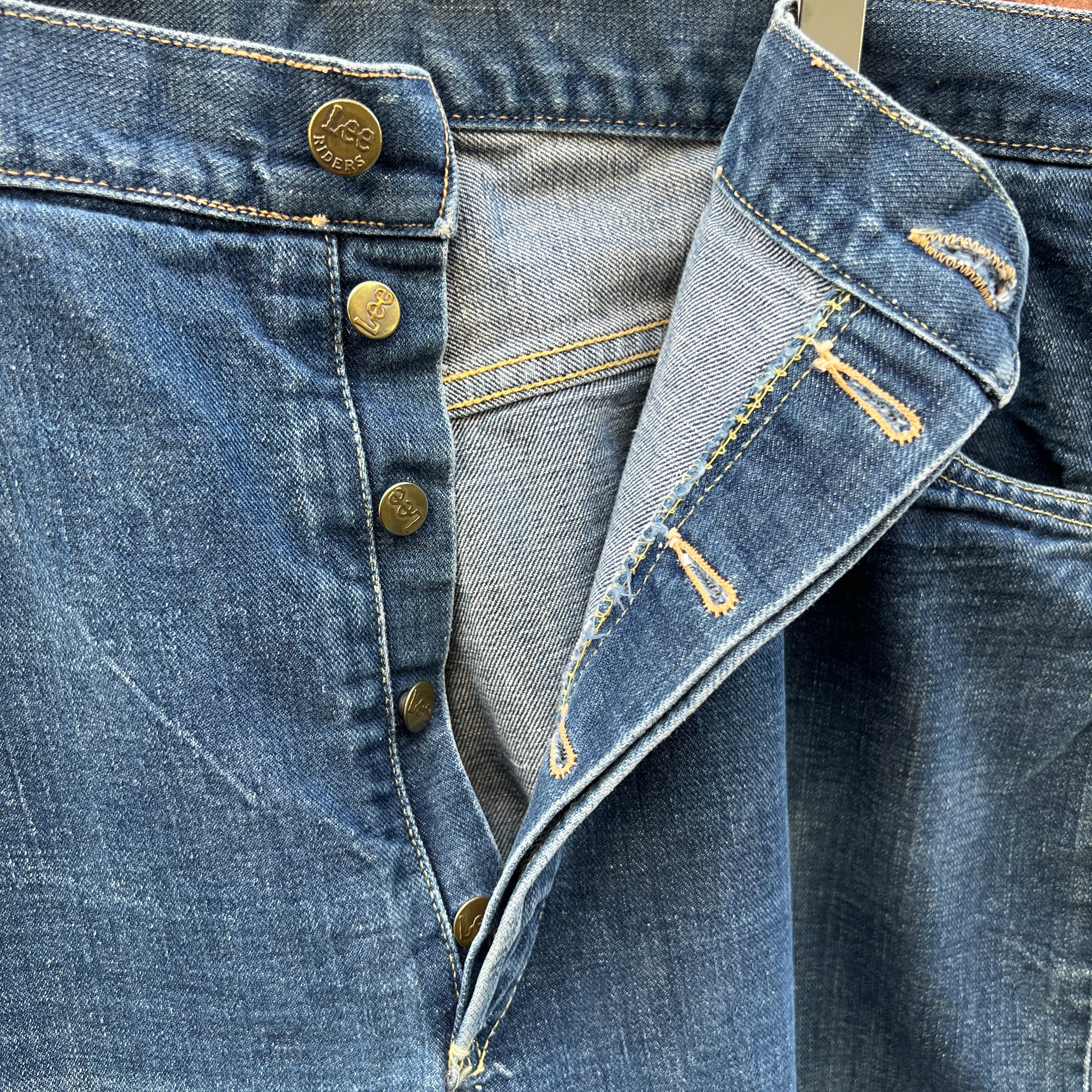 玉数少ないボタンフライモデル、ヴィンテージLeeらしい綺麗な縦落ち、うっすらと入るヒゲも◎