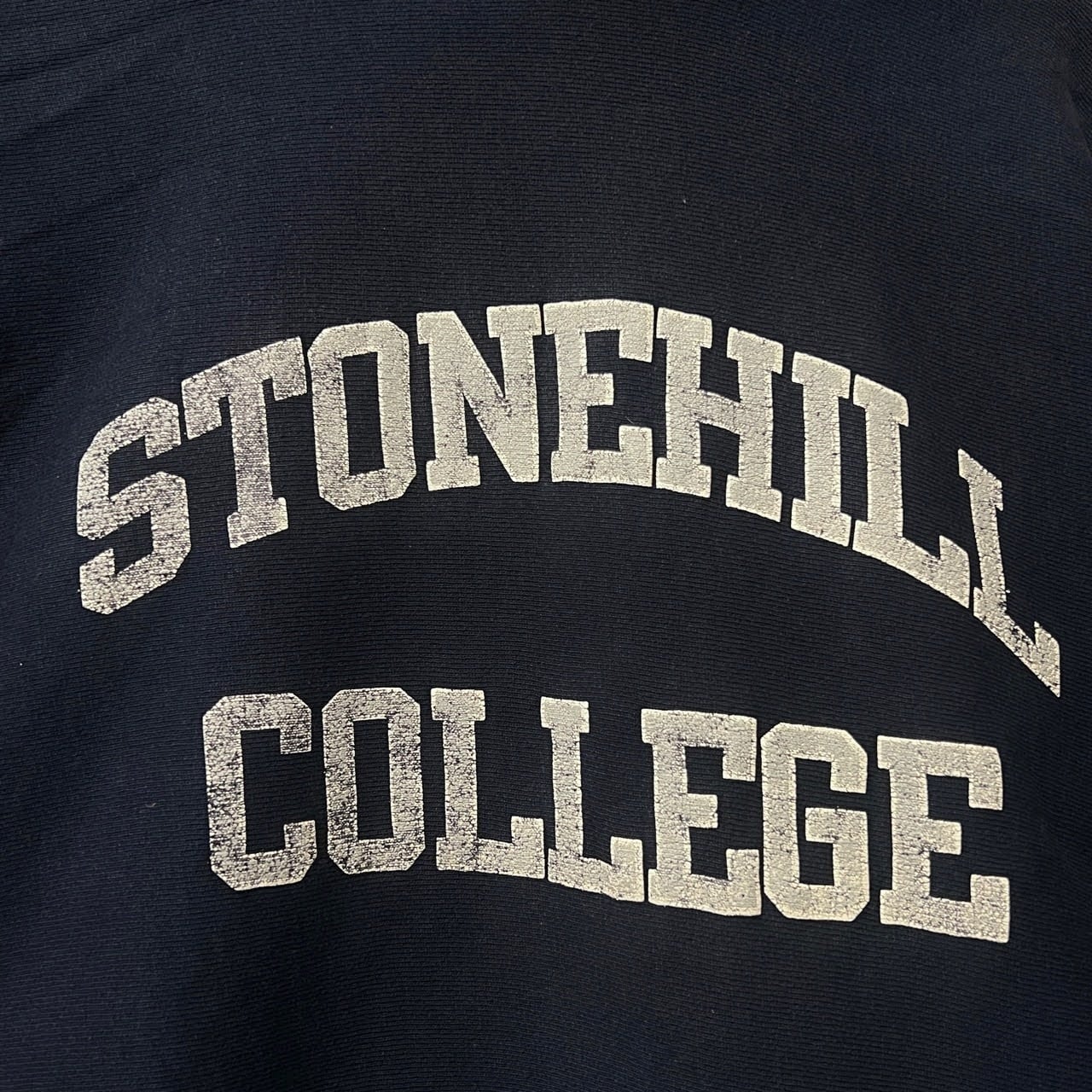 ネイビーボディにライトグレー×白枠の2段プリント、希少なパーカー。