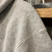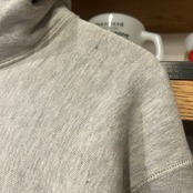 襟わずかにスレ、右後ろ肩にピンホールございますが、あまり気にならない程度かと。