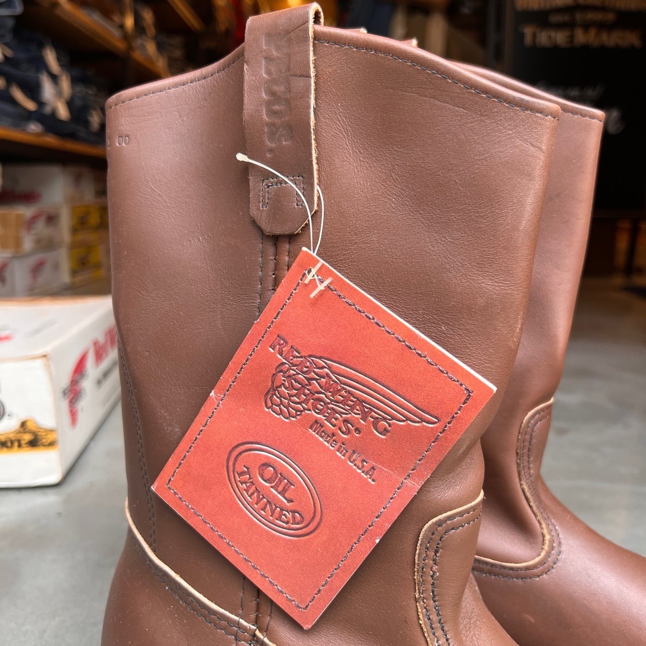 刺繡の羽タグの付く2000年製のRED WING ペコスブーツ。